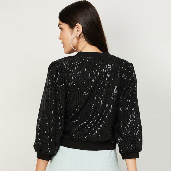 Women Black Party Embellished Crop Shrug