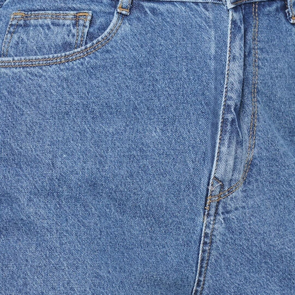 Blue solid high-rise denim shorts, has 5 pockets, button closure